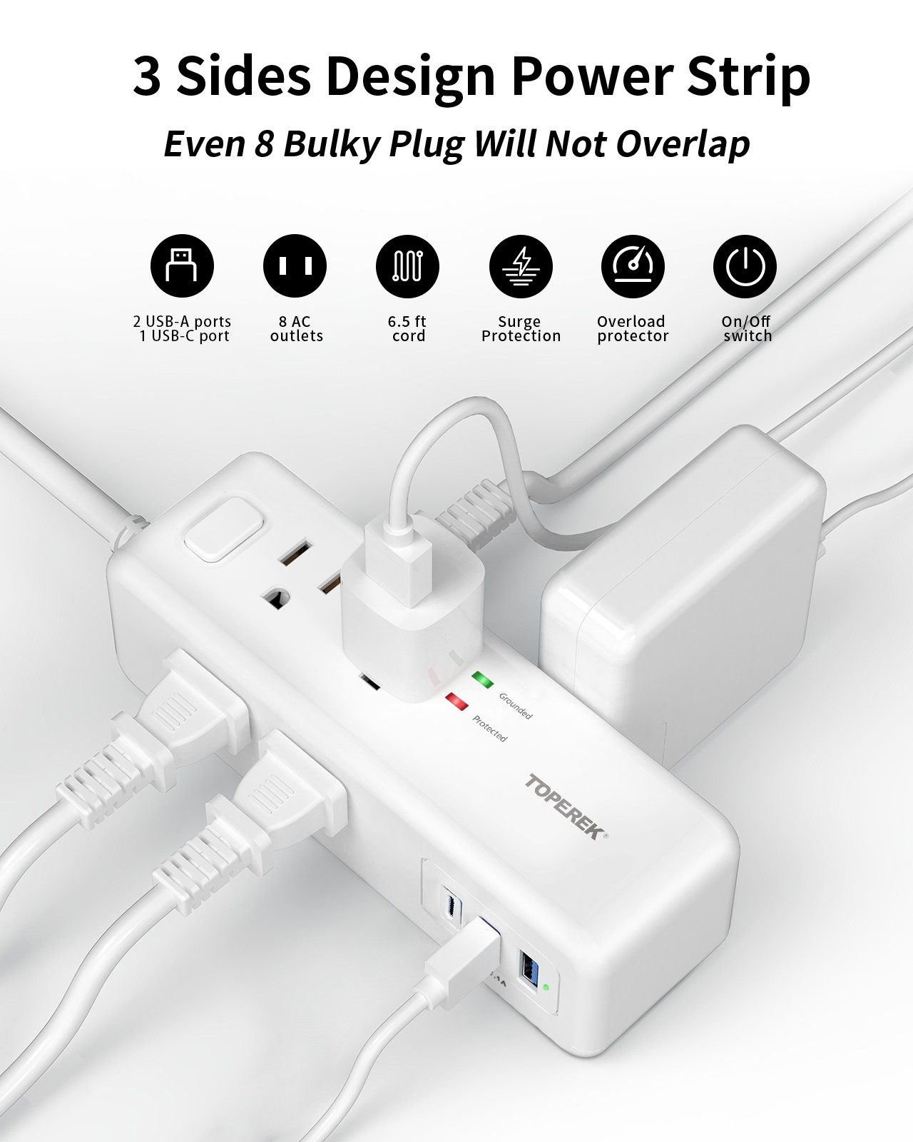 8 USA outlets with 2 USB-A + 1 USB-C - USB输出
