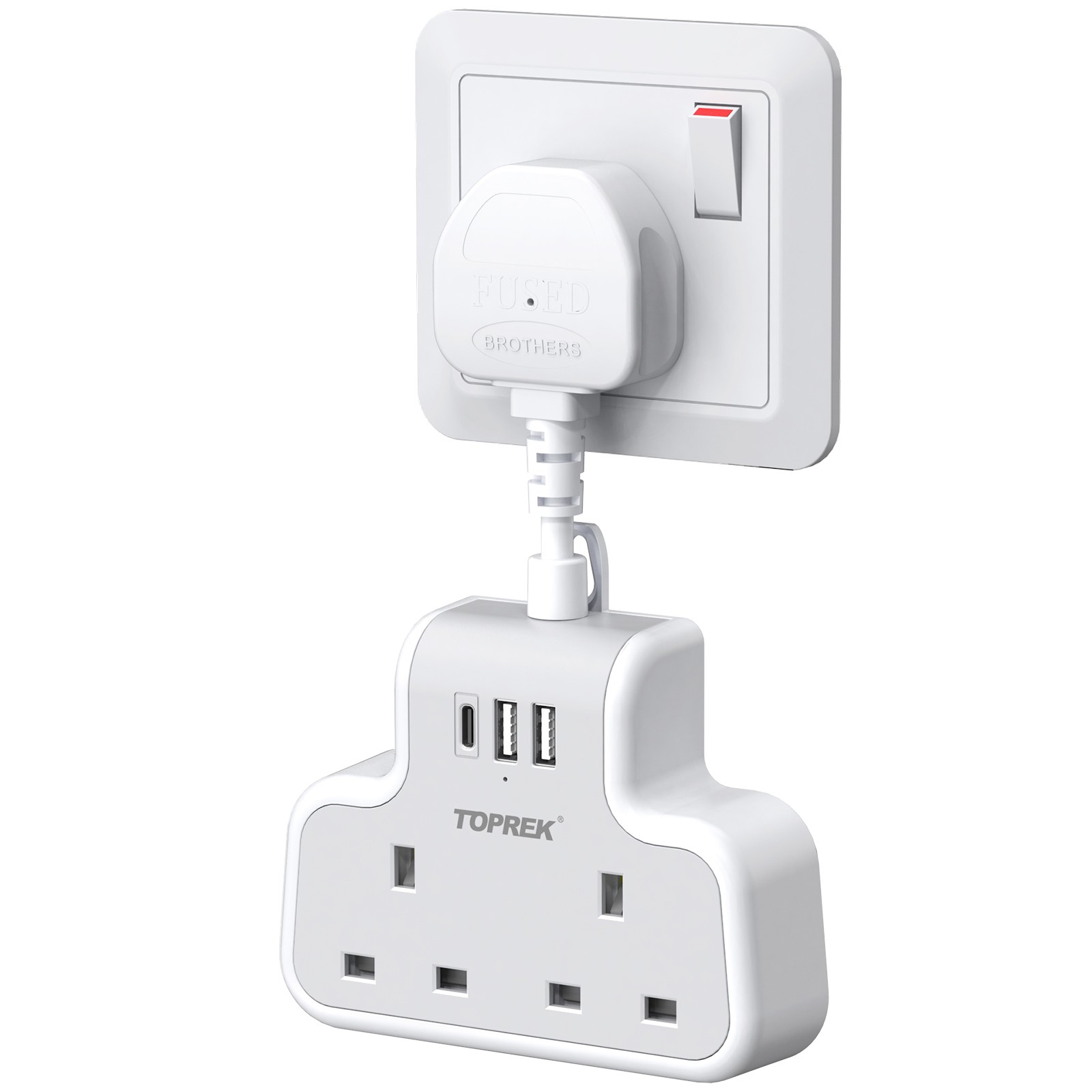 2个英国插孔 + 2个USB-A + 1个USB-C - USB输出