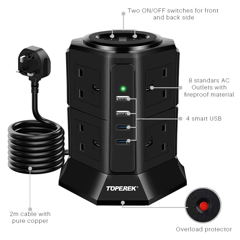 8 UK outlets with 2 USB-A + 2USB-C - USB输出