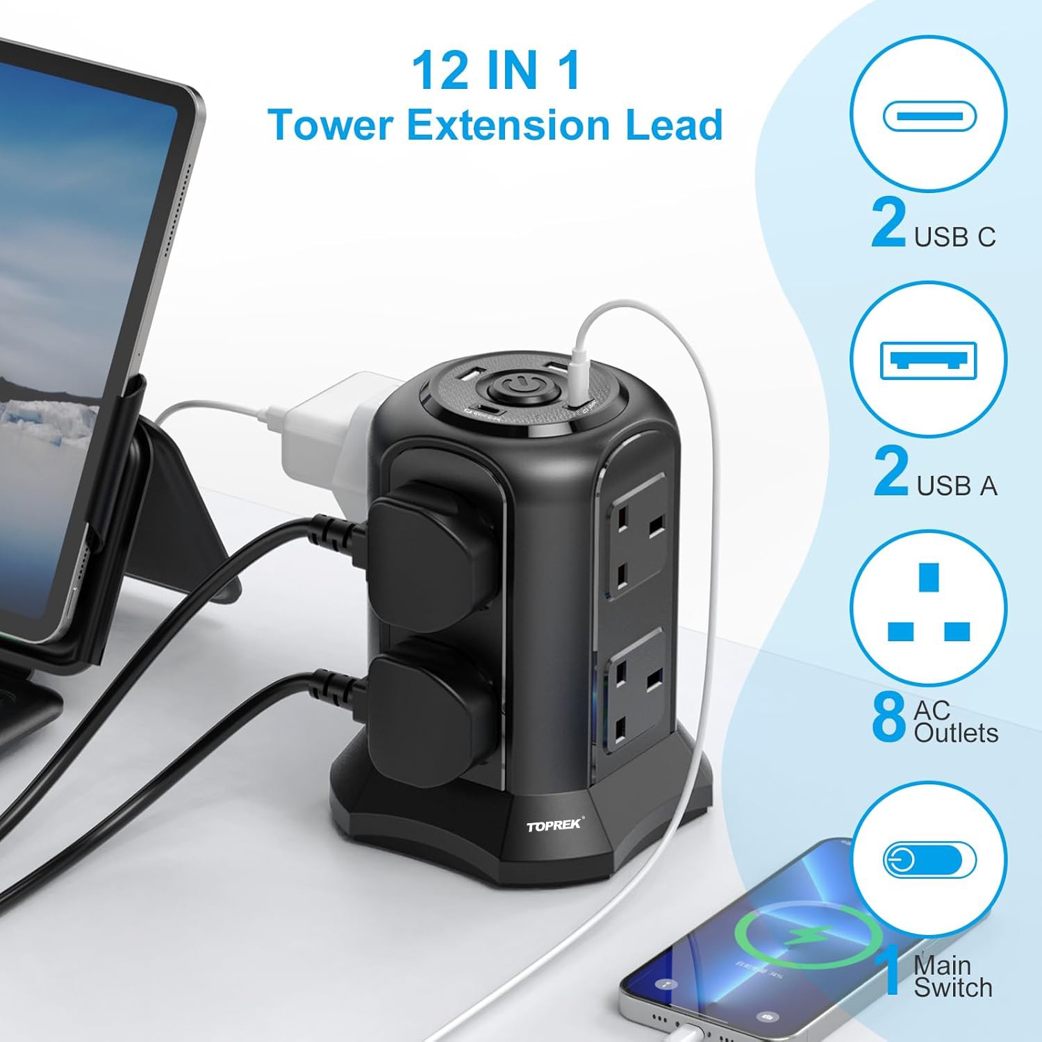 8个英规插孔 + 2个USB-A + 2个USB-C - USB输出