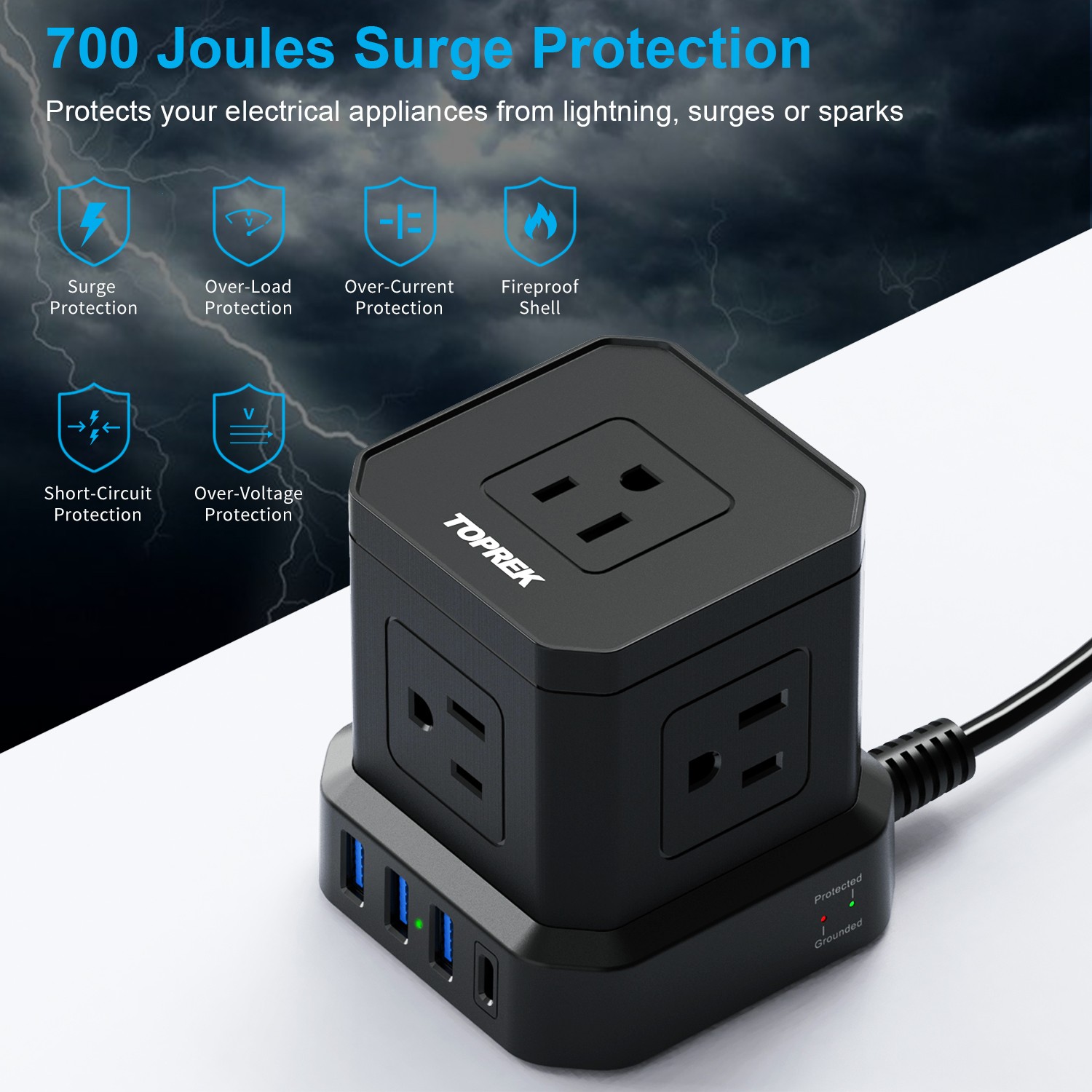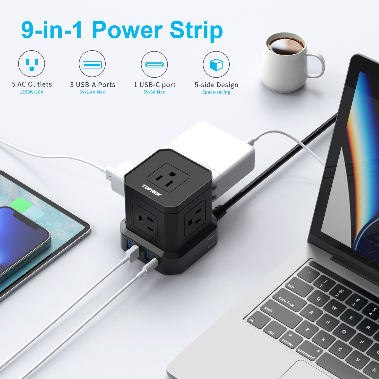 5 USA outlets with 3 USB-A + 1USB-C - USB输出