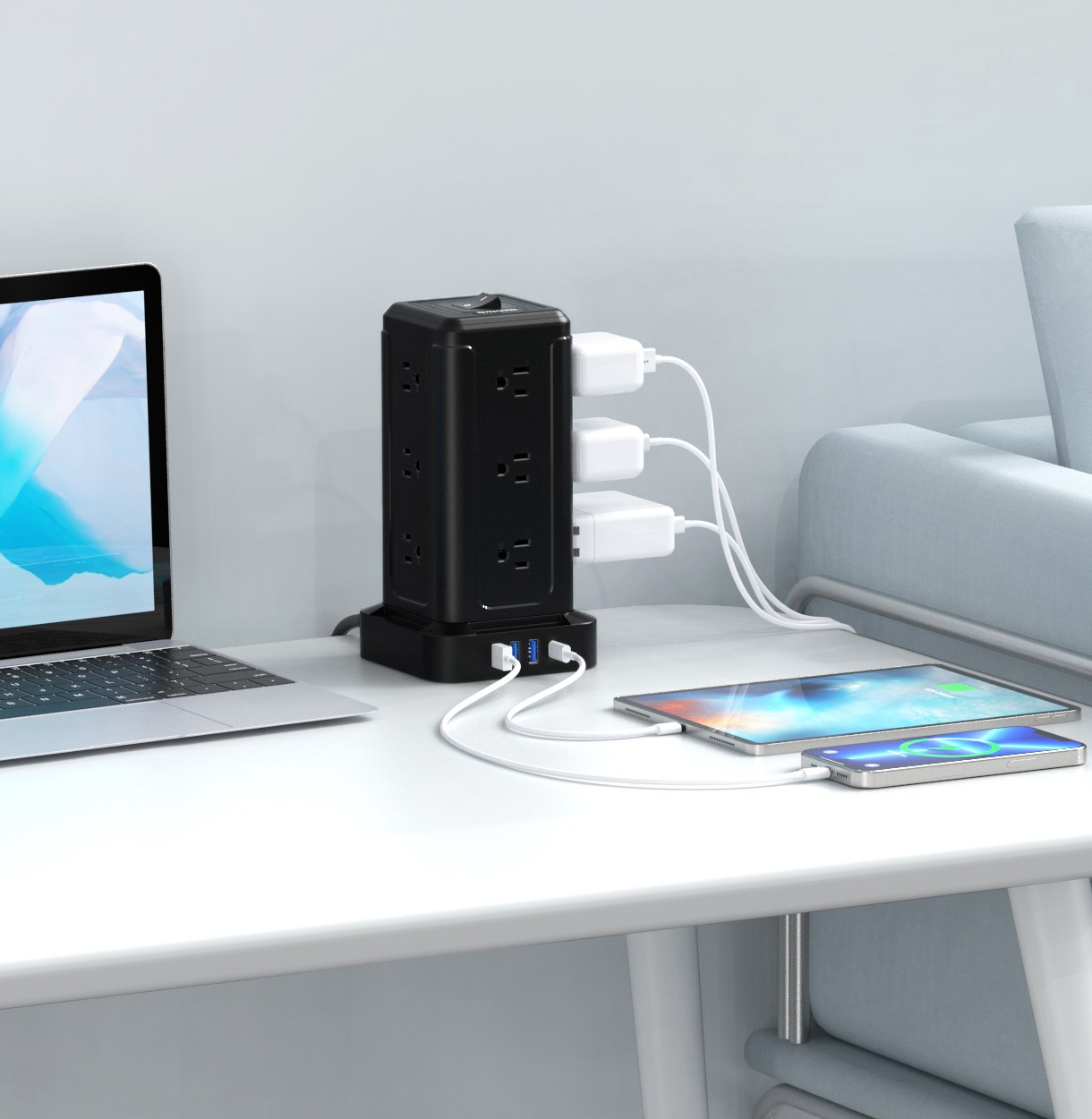 12 USA outlets with 3 USB-A + 2 USB-C - USB输出