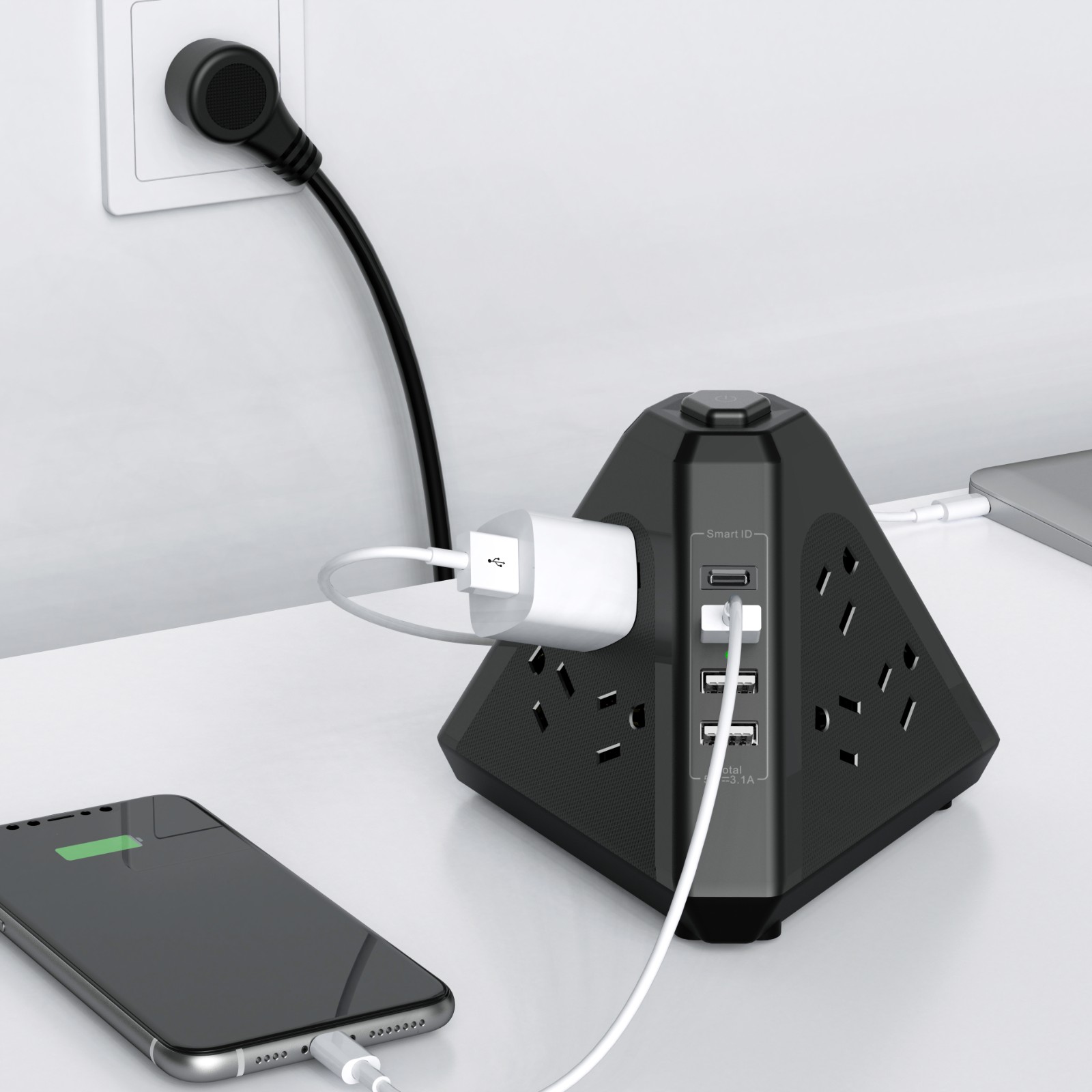 9 USA outlets with 3 USB-A + 1 USB-C - USB输出